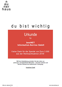 Im Rahmen unserer Weihnachtsaktion haben wir dank der vielen neuen KundInnen eine Spende in Höhe von EUR 3.000,- an das "neunerhaus" überweisen können.